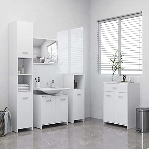 - vidaXL Badmöbel Set 4-TLG. Badschrank Waschbeckenunterschrank Unterschrank Midischrank Hochschrank Badezimmerschrank Badezimmermöbel Weiß