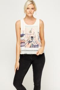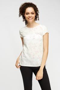 White Printed Cap Sleeve Top