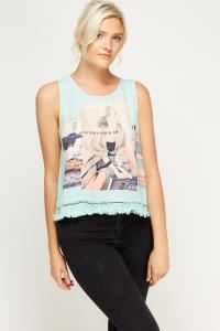 Printed Contrast Sleeveless Top