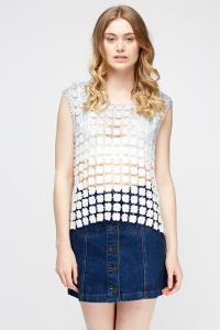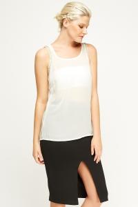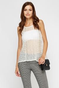 Mesh Overlay Sleeveless White Top