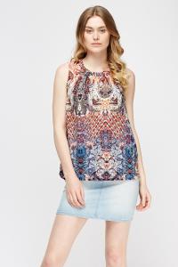 Mixed Print Sleeveless Top