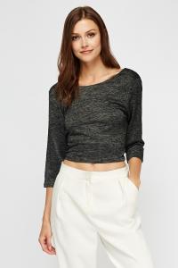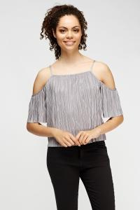 Pleated Grey Cold Shoulder Top