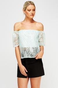 Off Shoulder Overlay Light Blue Top