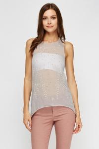 Embellished Mesh Front Top