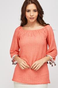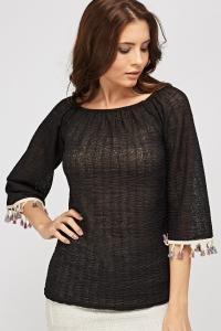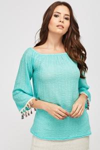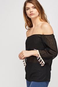 Off Shoulder Fringed Sleeve Top