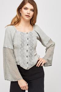 Embroidered Flare Sleeve Top