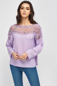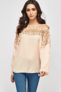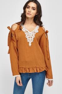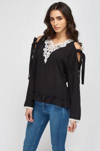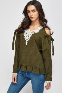 Crochet Trim Cold Shoulder Casual Top
