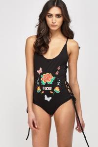 Printed Tie Up Side Bodysuit