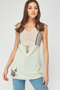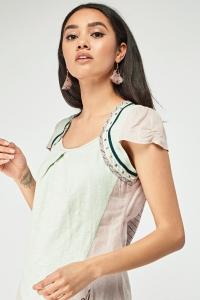 Mixed Embroidered Colour Block Top