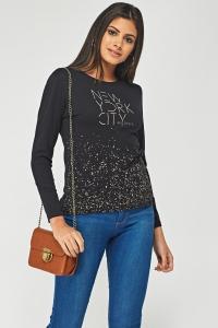 Speckled Print Long Sleeve T-Shirt