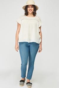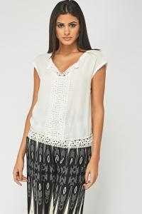 Open Neck Crochet Trim Contrast Top