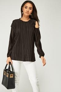 Pleated Cut Out Shoulder Top