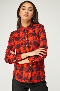 Checked Floral Mixed Shirt
