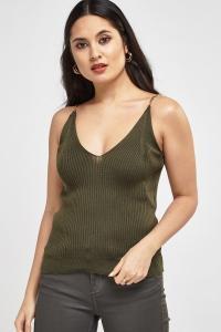Gold Chain Strap Ribbed Cami Top