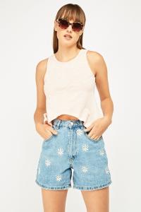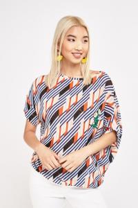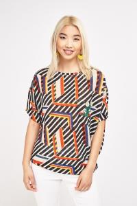 Flower Embroidered Applique Print Top