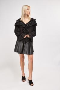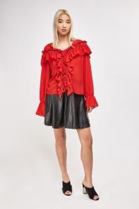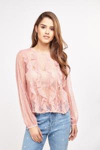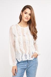 Ruffle Gathers With Eyelets Sheer Blouse