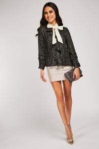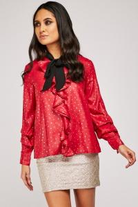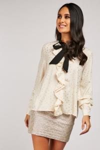 Metallic Ruffle Overlay Chiffon Blouse