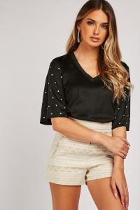Suedette Studded Sleeve Top