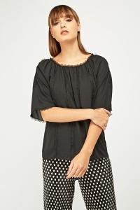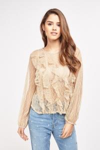 Textured Ruffle Net Trim Blouse