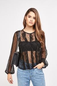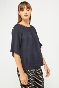 Lace Net Trim Sleeve Top