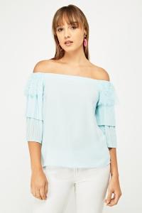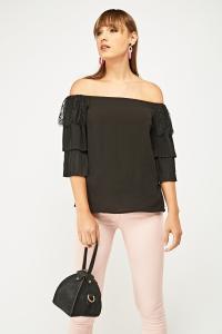 Lace Sheer Pleat Contrast Bardot Top
