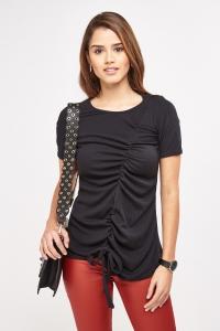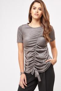 Asymmetric Ruched Gathered Rib Top