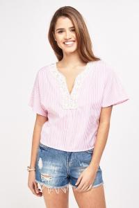 Crochet Trim Insert Striped Top