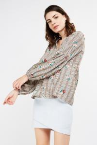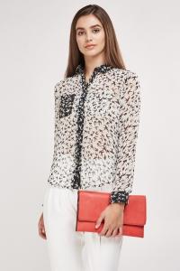 Bird Print Sheer Blouse