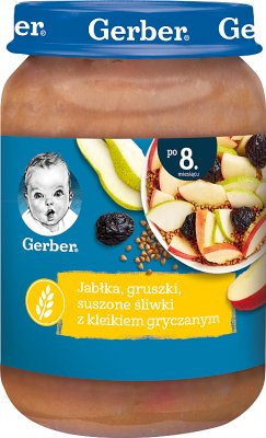- Gerber Jabłka gruszki suszone śliwki z kleikiem gryczanym, po 8. miesiącu, 190 g