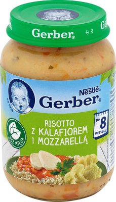 - Gerber Risotto z kalafiorem i mozzarellą bez mięsa, po 8. miesiącu, 190 g