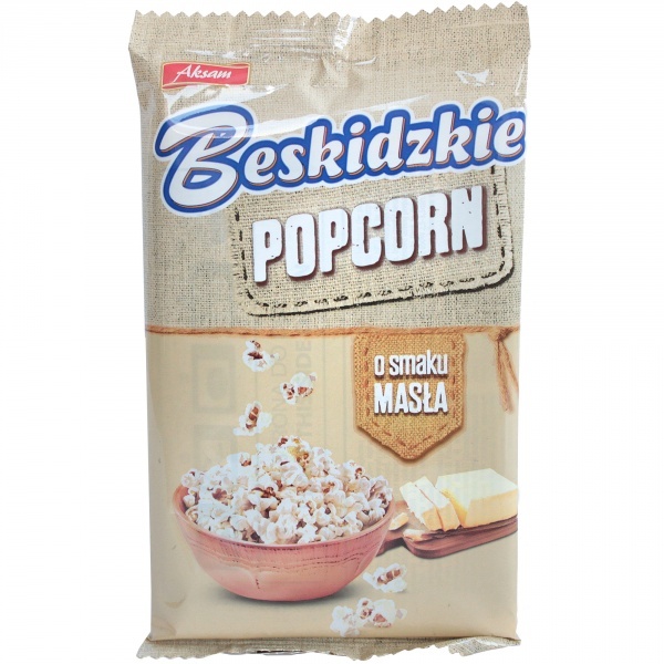 Aksam Popcorn Beskidzki do przyrządzania w kuchence mikrofalowej o smaku masła, 90 g