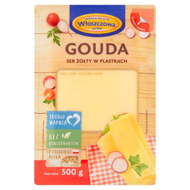 - Włoszczowa Ser żółty gouda w plastrach 500 g
