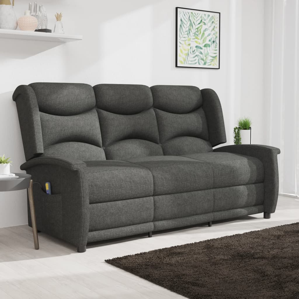 vidaXL Atlošiamas trivietis masažinis krėslas, tamsiai pilkas, audinys