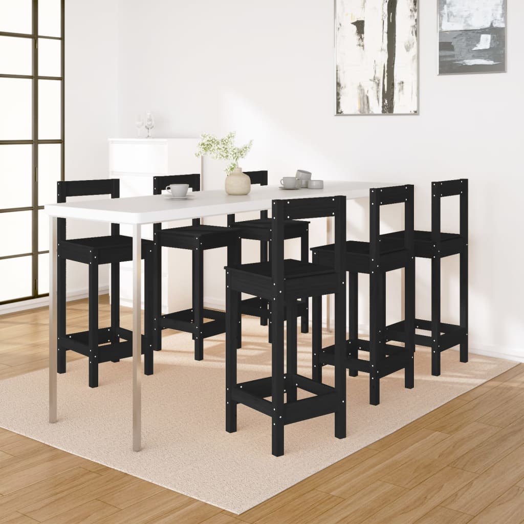 - vidaXL Baro kėdės, 6vnt., juodos spalvos, pušies medienos masyvas