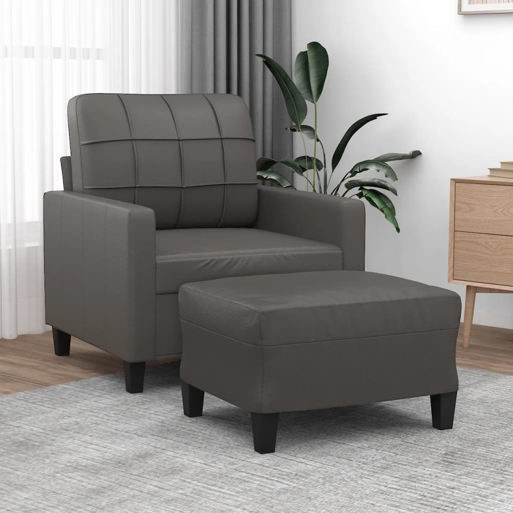- vidaXL Krėslas su pakoja, pilkos spalvos, 60cm, dirbtinė oda