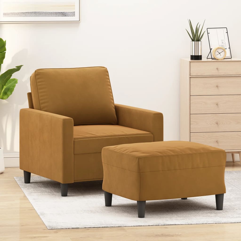 - vidaXL Krėslas su pakoja, rudos spalvos, 60cm, aksomas