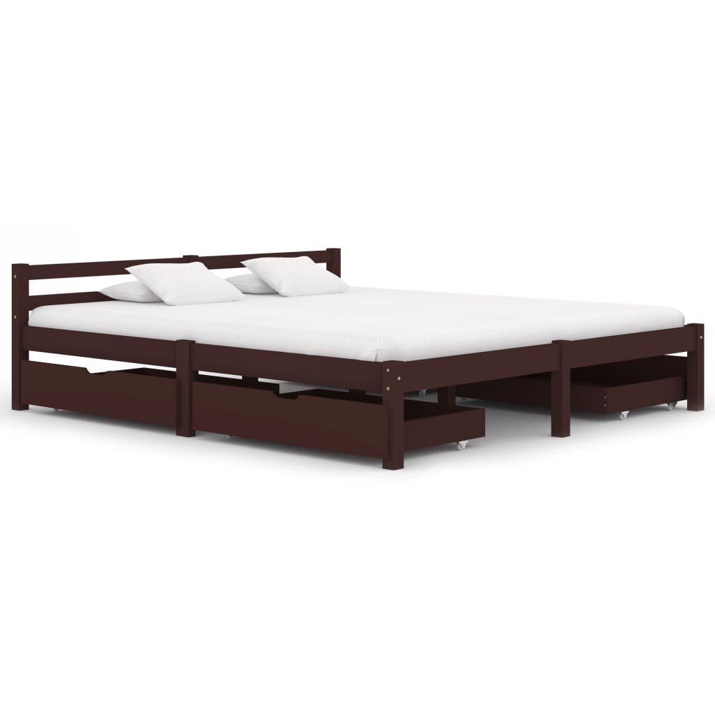 - vidaXL Lovos rėmas su 4 stalčiais, tamsiai rudas, 160x200cm, pušis