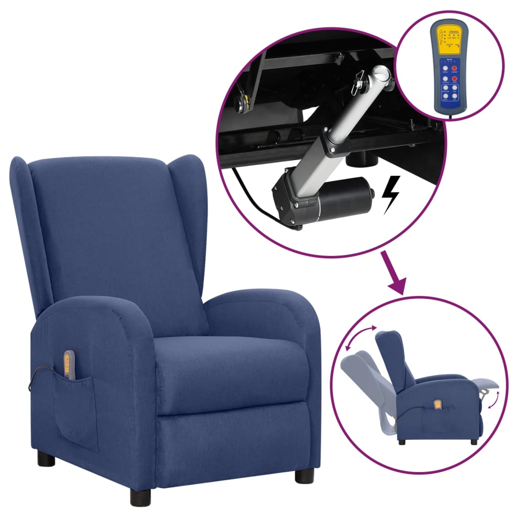 - vidaXL Pakeliamas atlošiamas masažinis krėslas, mėlynas, audinys