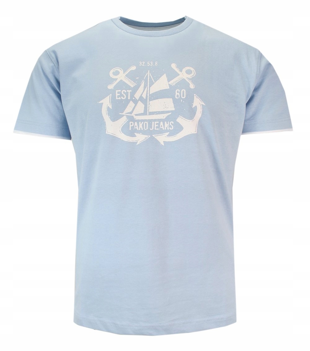 Błękitny T-shirt z Nadrukiem -pako Jeans- 3XL
