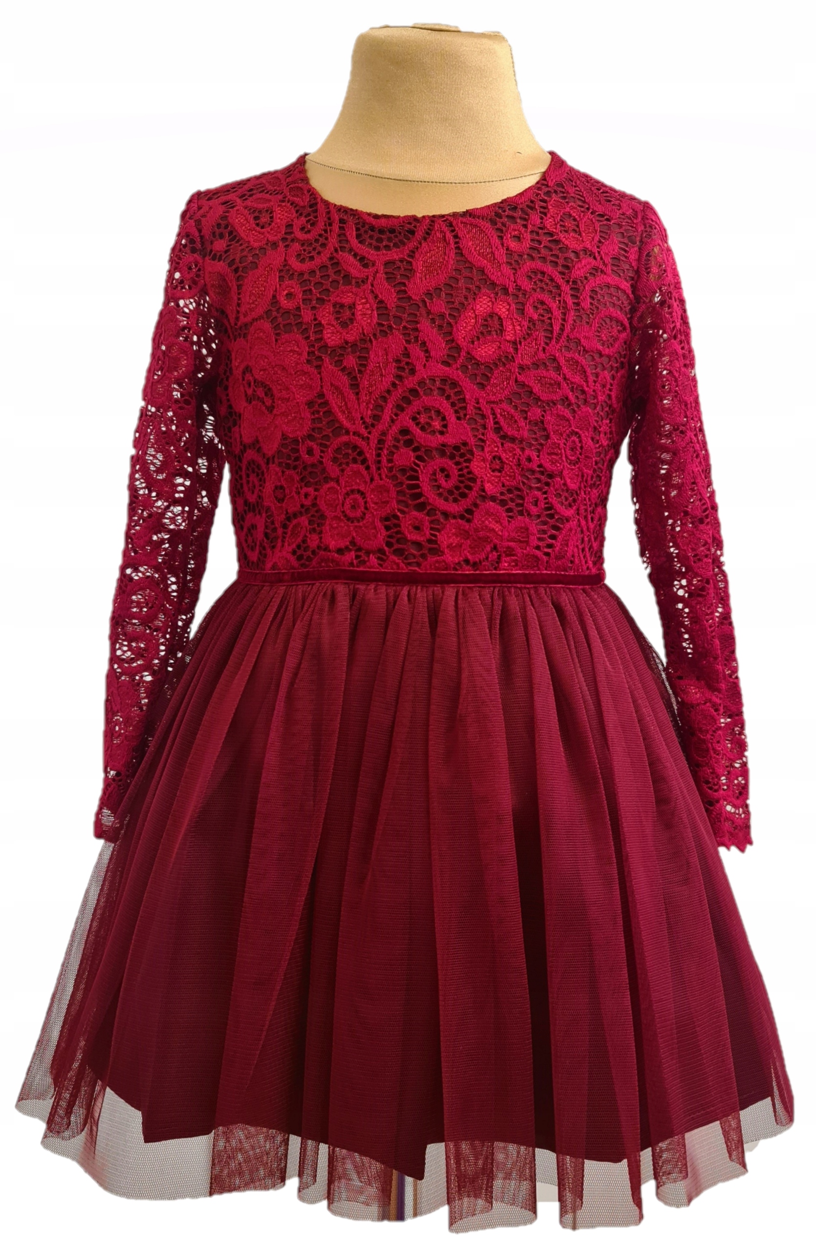Bordowa koronkowa 128 sukienka wesele świąteczna