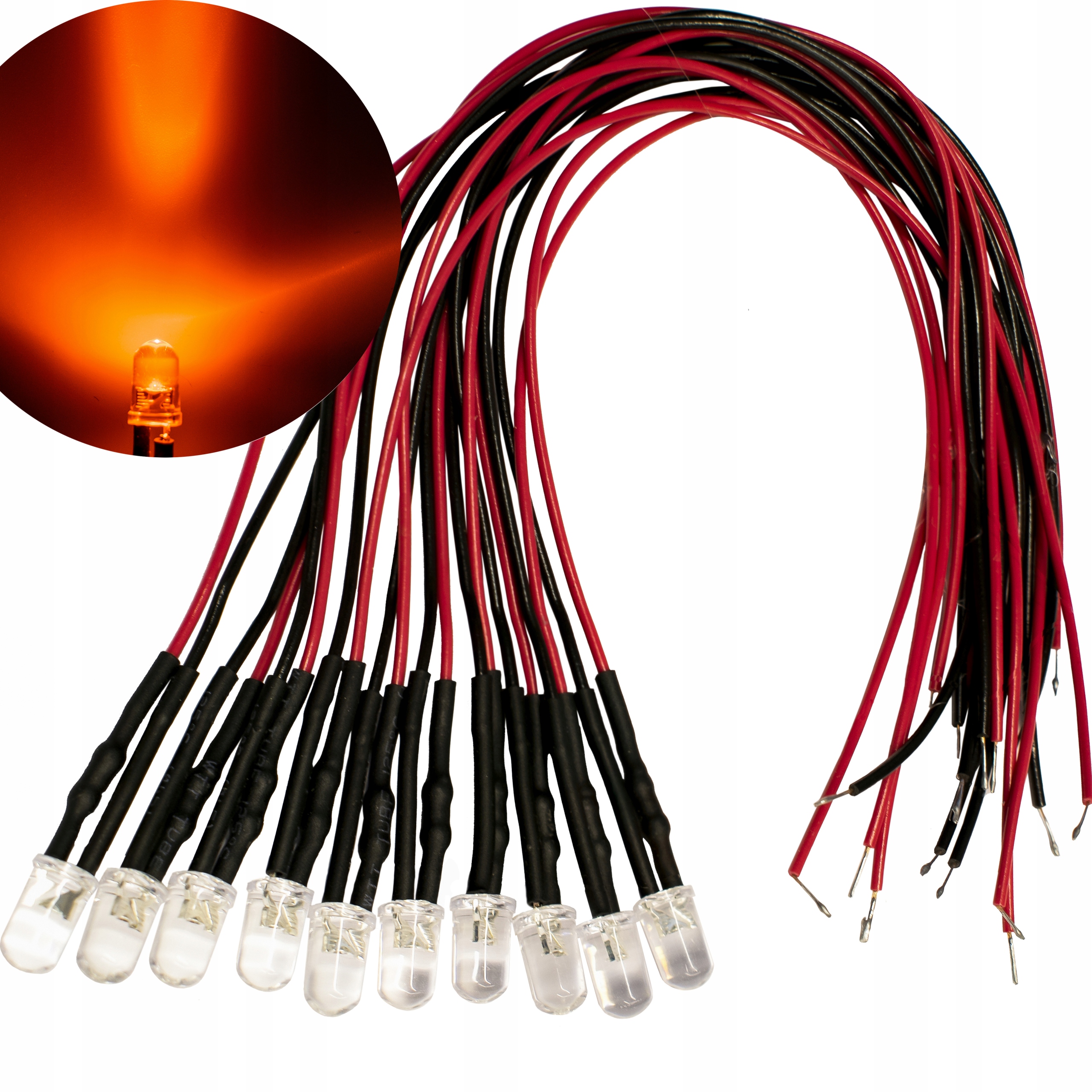 Diody Led 3mm Pomarańcz 12V przewód 20cm 10szt