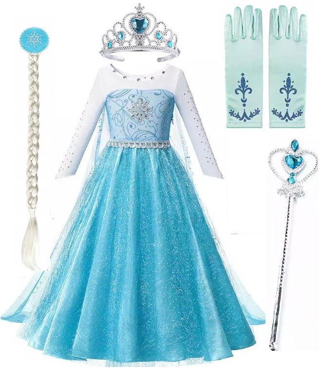 Elsa Strój Sukienka 4 szt Zestaw Korona Elza 122