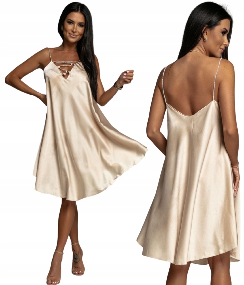 Satynowa Sukienka Z Ozdobnymi Łańcuszkami Luźna