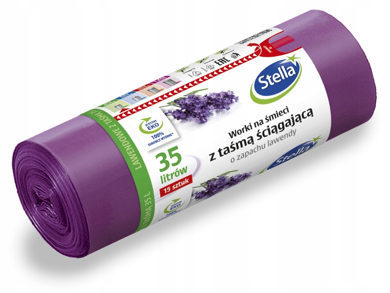 Stella Worki Na Śmieci Z Taśmą Lawendowe 35L 15SZT