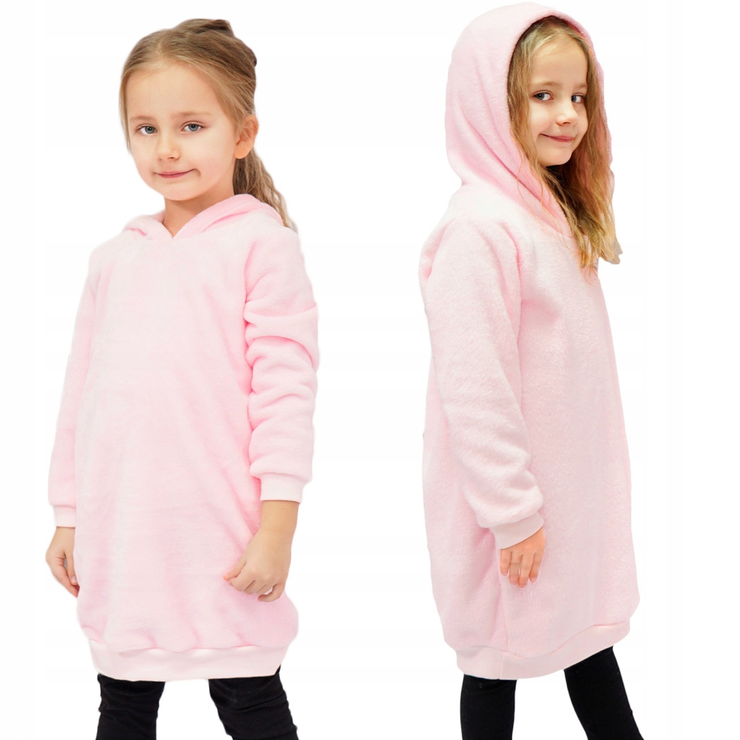 Sukienka Pluszowa różowa r.134 ciepła z kapturem