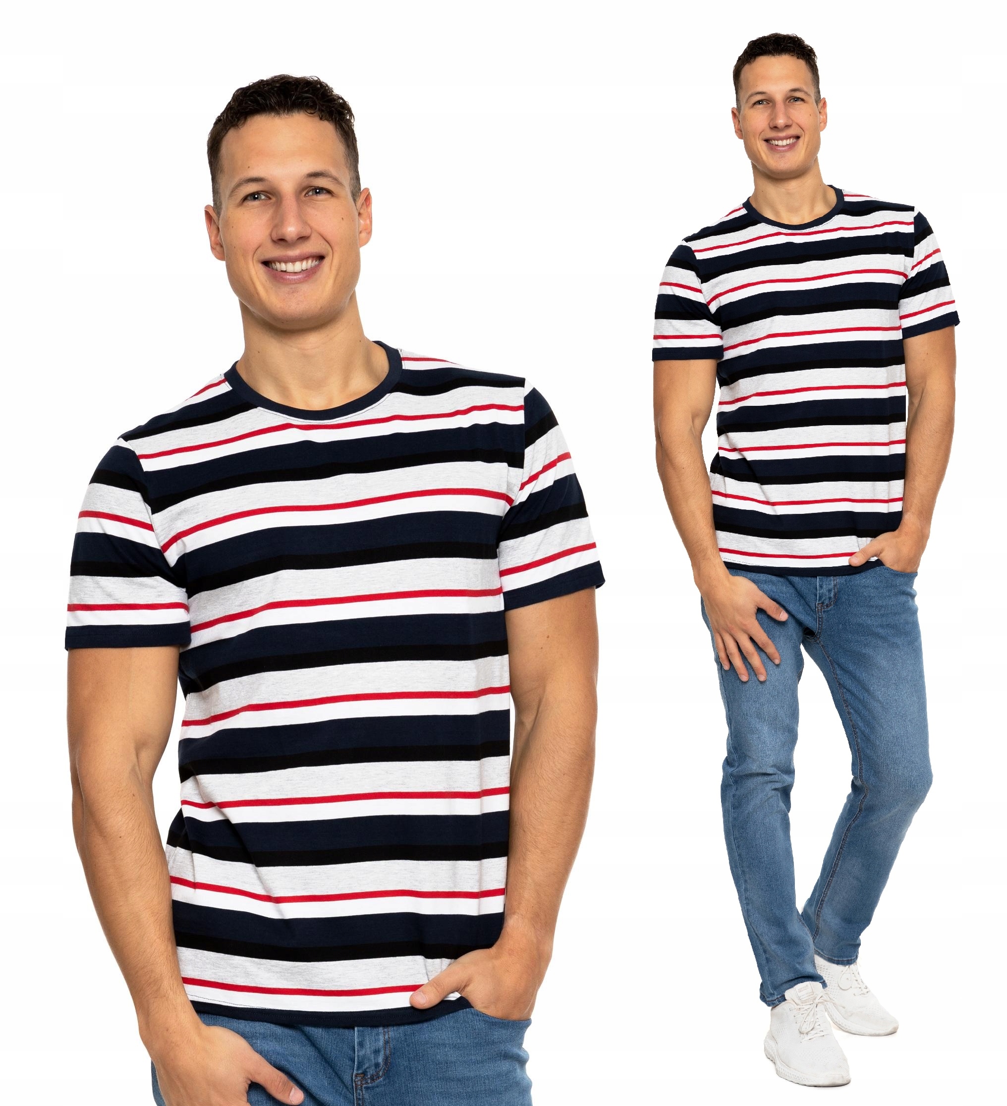 T-shirt Koszulka Męska Paski Bawełna XL Moraj