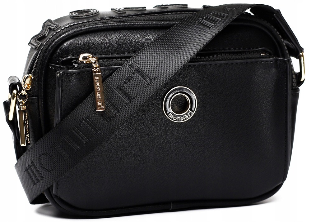 Torebka Listonoszka Monnari Mała Czarna Napis Logo