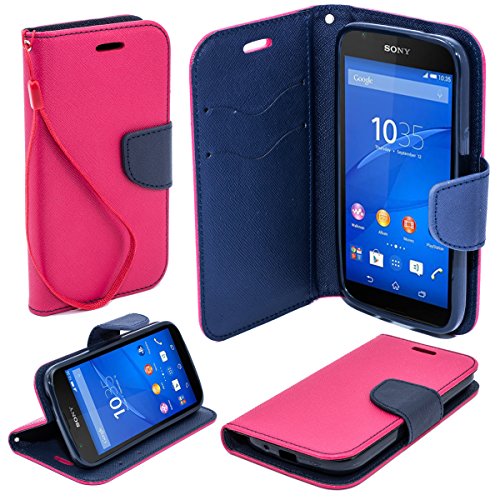 - Moozy zweifarbige Fancy Tagebuch Flip Handy Tasche mit Stand / Handschlaufe / Silikon Handyhalter für Sony E2003 E2053 Xperia E4g Rosa / Blau
