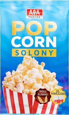 Producent marki Aga Holtex opisuje Kukurydza solona do prażenia w kuchenkach mikrofalowych tak:Wyśmienity popcorn uszlachetniony solą himalajską, uczyni każde spotkanie wyjątkowym!