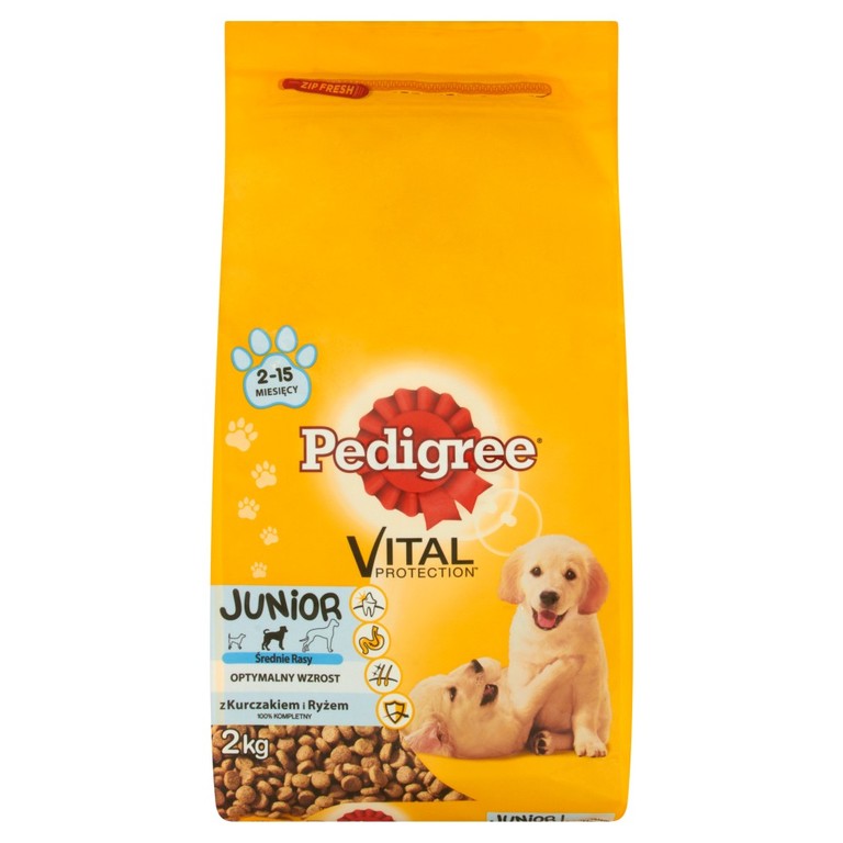 Pedigree Vital Protection Junior z kurczakiem i ryżem Średnie rasy Karma pełnoporcjowa 2 kg